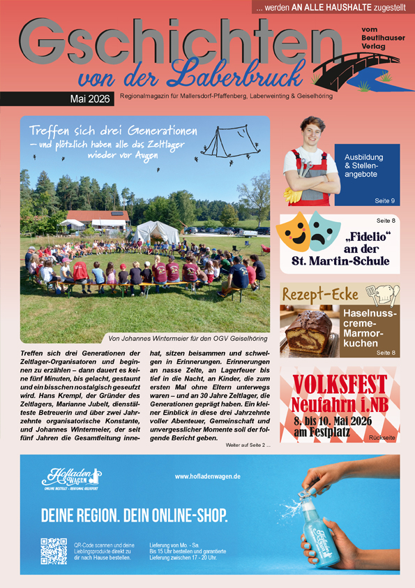 Versand-Abo: Sie wohnen nicht (mehr) im Verteilgebiet der Gschichten von der Laberbruck und möchten diese trotzdem weiterhin regelmäßig lesen? Gegen eine Aufwandsentschädidung von 50€/Jahr senden wir Ihnen gern die Gschichten von der Laberbruck nach Hause. Schreiben Sie uns eine Nachricht.