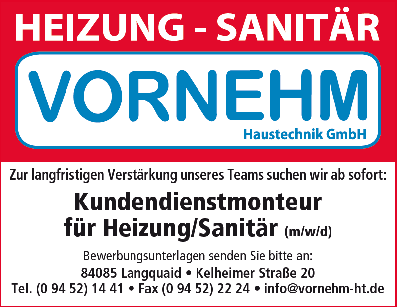 Tel.: 09452 1441 • Fax: 09452 2224 • info@vornehm-ht.de